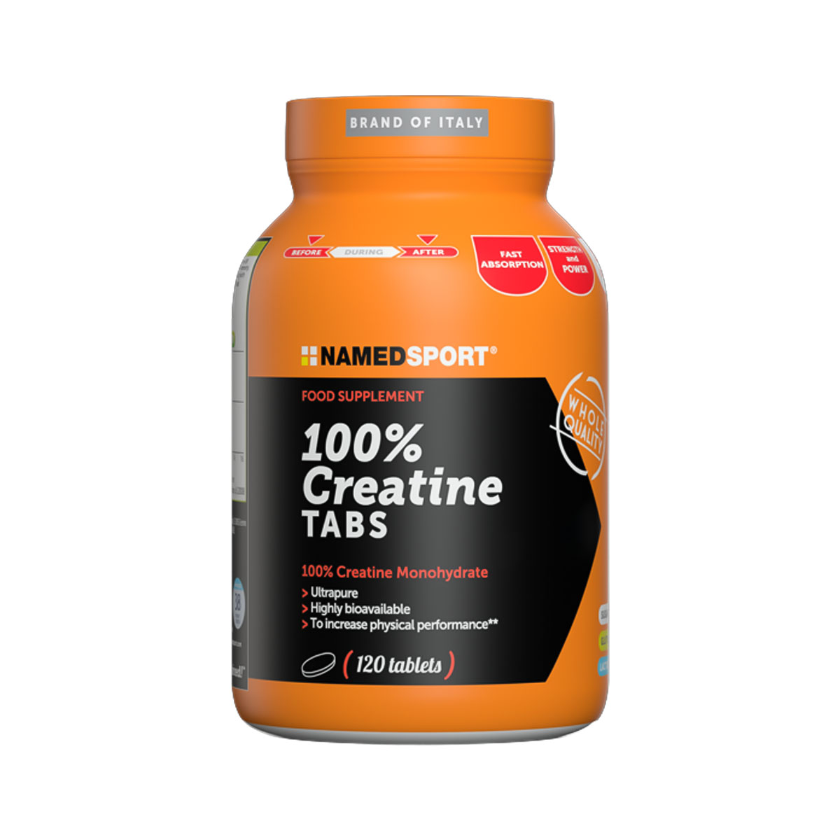 100% CREATINE TABS NAMEDSPORT rappresenta l'eccellenza dell'integrazione per la forza in un formato estremamente pratico. La creatina monoidrato è l'integratore più validato scientificamente per incrementare le prestazioni fisiche in caso di attività ripetitive, di elevata intensità e di breve durata. NamedSport utilizza una materia prima con granulometria 80 Mesh, che garantisce un grado di finezza ottimale per favorire l'assorbimento e minimizzare i problemi di digeribilità. Ogni compressa fornisce 1000mg di creatina pura, rendendo il dosaggio semplice e preciso per ogni esigenza atletica.