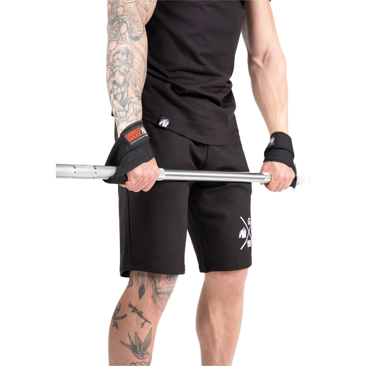 Il colore è completamente nero con logo Gorilla Wear ricamato tono su tono, per un look essenziale e professionale in palestra.