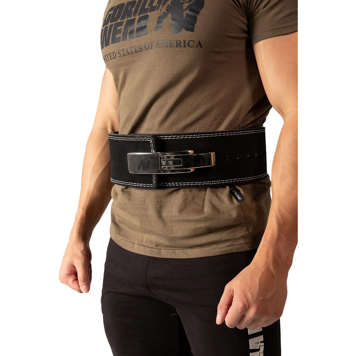 La Gorilla Wear 4 Inch Premium Leather Lever Belt Black rappresenta uno dei modelli più iconici e apprezzati nel panorama del powerlifting e del functional training. Realizzata interamente in pelle pieno fiore di alta qualità, con spessore costante e finitura nera opaca, questa cintura combina resistenza estrema, durata nel tempo e un design essenziale che la rende immediatamente riconoscibile.