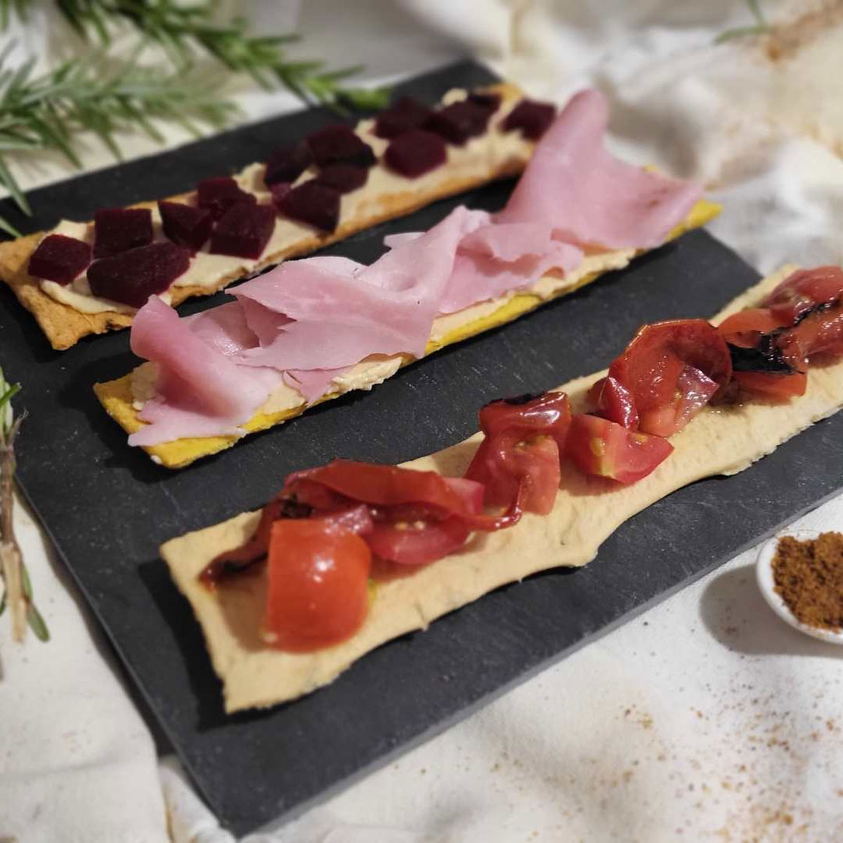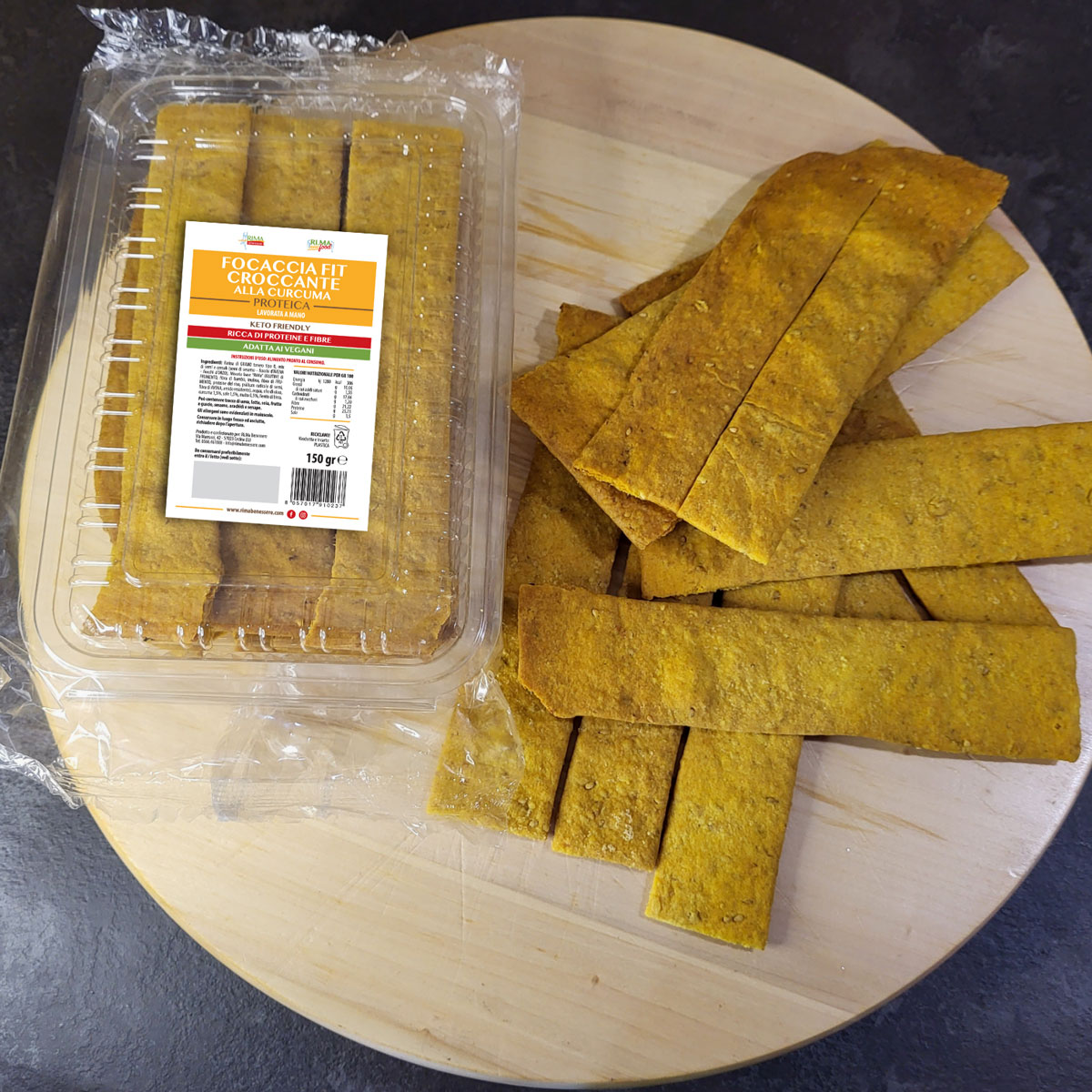 La Focaccia Croccante Fit è disponibile in diverse varianti di gusto, come rosmarino, curcuma e messicana, ciascuna con caratteristiche distintive. La variante al rosmarino esalta il sapore mediterraneo con un aroma erbaceo e fresco, perfetta per abbinamenti con formaggi o verdure grigliate. La versione alla curcuma sfrutta le proprietà antiossidanti e antinfiammatorie di questa spezia, aggiungendo un colore vivace e un gusto leggermente speziato. La focaccia messicana, con il suo tocco di paprica affumicata, offre un’esperienza audace e piccante, ideale per chi ama sapori intensi e vuole sperimentare qualcosa di nuovo.
