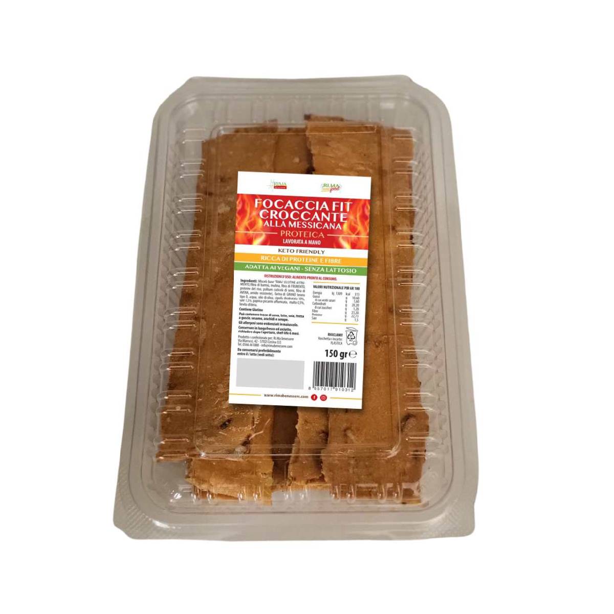 La Focaccia Croccante Fit Proteica di Ri.Ma Benessere è un prodotto innovativo che unisce il gusto autentico della tradizione italiana a un profilo nutrizionale avanzato, pensato per chi cerca un alimento sano, versatile e adatto a diversi regimi alimentari. Realizzata con ingredienti selezionati come semi di sesamo, fiocchi di avena e fiocchi d’orzo, questa focaccia offre una consistenza croccante e un sapore ricco, mantenendo un basso contenuto calorico e un’elevata concentrazione di nutrienti essenziali.