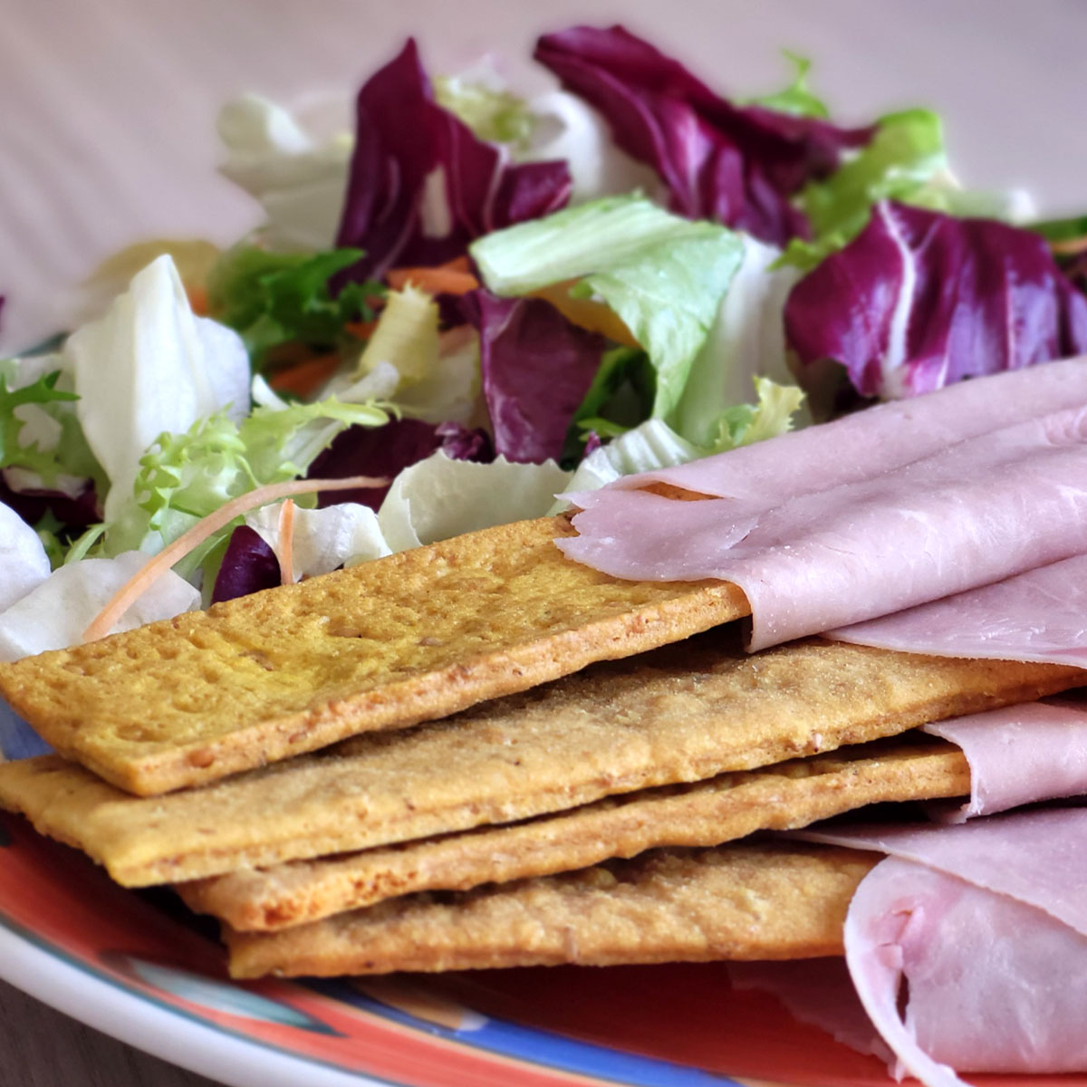 - Basso contenuto di carboidrati: Con un apporto di carboidrati paragonabile a quello di una mela, la Focaccia Croccante Fit si distingue per il suo basso indice glicemico. Questo la rende un’opzione eccellente per chi segue diete low-carb, chetogeniche o per persone con diabete che necessitano di controllare i livelli di zucchero nel sangue. La ridotta quantità di carboidrati contribuisce a evitare picchi glicemici, favorendo un’energia stabile e duratura.