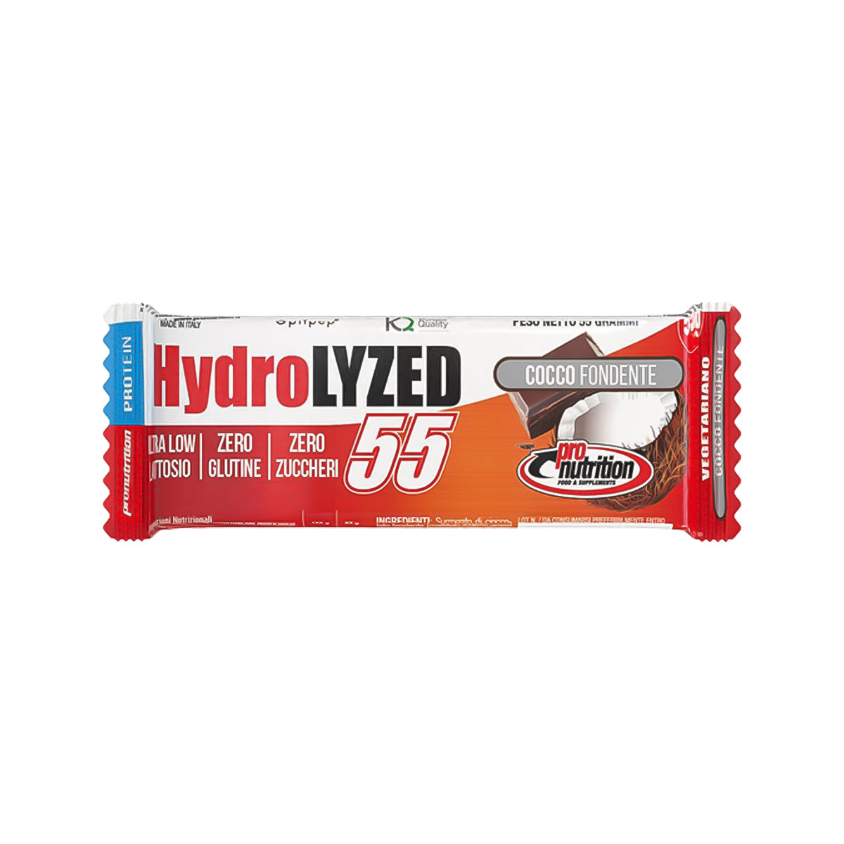 - Profilo nutrizionale bilanciato: Ogni barretta da 55 g fornisce 248,4 kcal, con 11,7 g di grassi (di cui 9,9 g saturi), 13,8 g di carboidrati (di cui 13,8 g di polioli) e 0,28 g di sale. Questo equilibrio rende la barretta un’opzione versatile per il consumo quotidiano, sia come snack che come supporto pre o post allenamento.