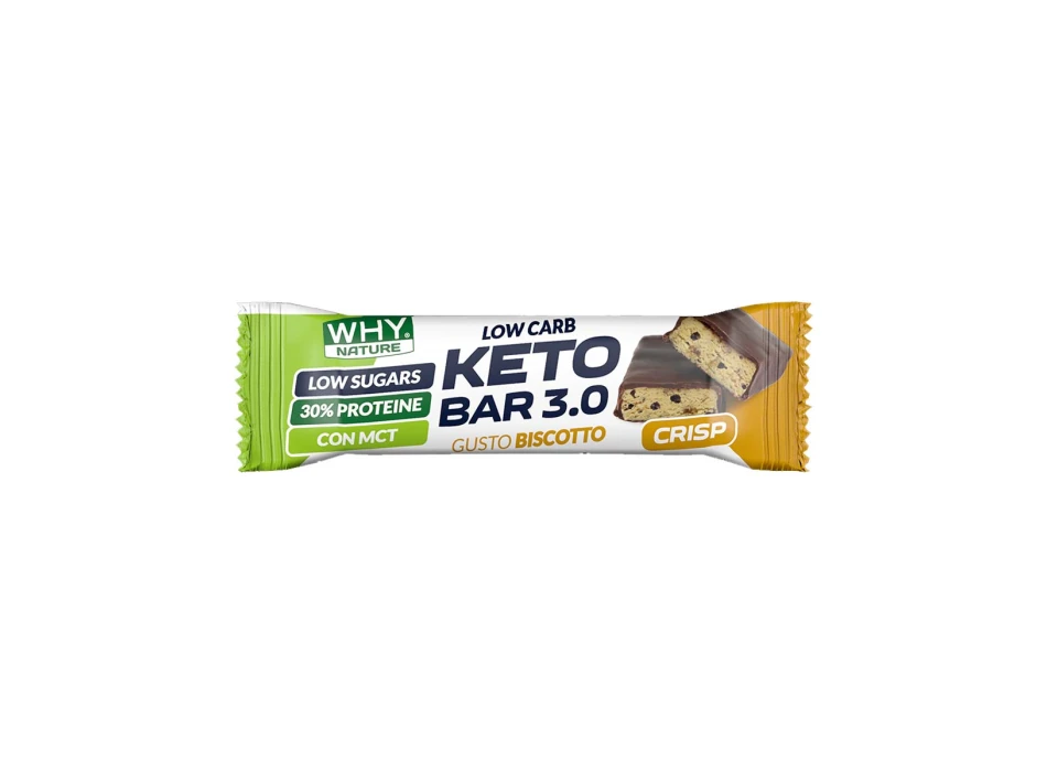La Keto Bar 3.0 di WHYnature è una barretta proteica appositamente formulata per chi segue una dieta chetogenica o desidera mantenere un regime alimentare a basso contenuto di carboidrati, senza rinunciare al gusto. Con un’elevata concentrazione di proteine (30%), un basso contenuto di zuccheri e un alto contenuto di fibre, questa barretta rappresenta uno snack ideale per atleti, persone attive o chiunque voglia supportare il proprio benessere attraverso un’alimentazione bilanciata e nutriente. Arricchita con MCT (trigliceridi a media catena), offre un supporto energetico ottimale, perfettamente in linea con le esigenze di una dieta a basso apporto di carboidrati.