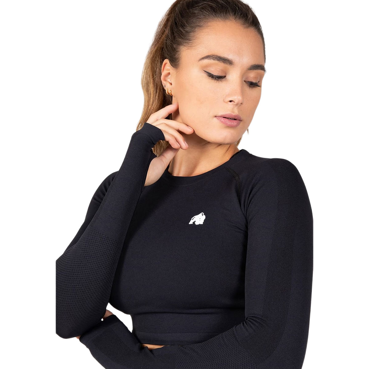 Consider the thumb holes: more than a convenience, they serve as an extension of the garment's ergonomic design, aligning with the natural anatomy of the hand and wrist to prevent bunching during dynamic actions like kettlebell swings or rope climbs. The mesh panels, typically made from a finer gauge of the same nylon-spandex mix, are laser-cut or ultrasonically bonded to avoid any seams, ensuring that breathability doesn't come at the cost of structural integrity. This level of detail positions the Hilton as a premium choice in the crowded market of athletic tops, where functionality meets fashion in a cropped, long-sleeve format that's both trend-forward and timeless.