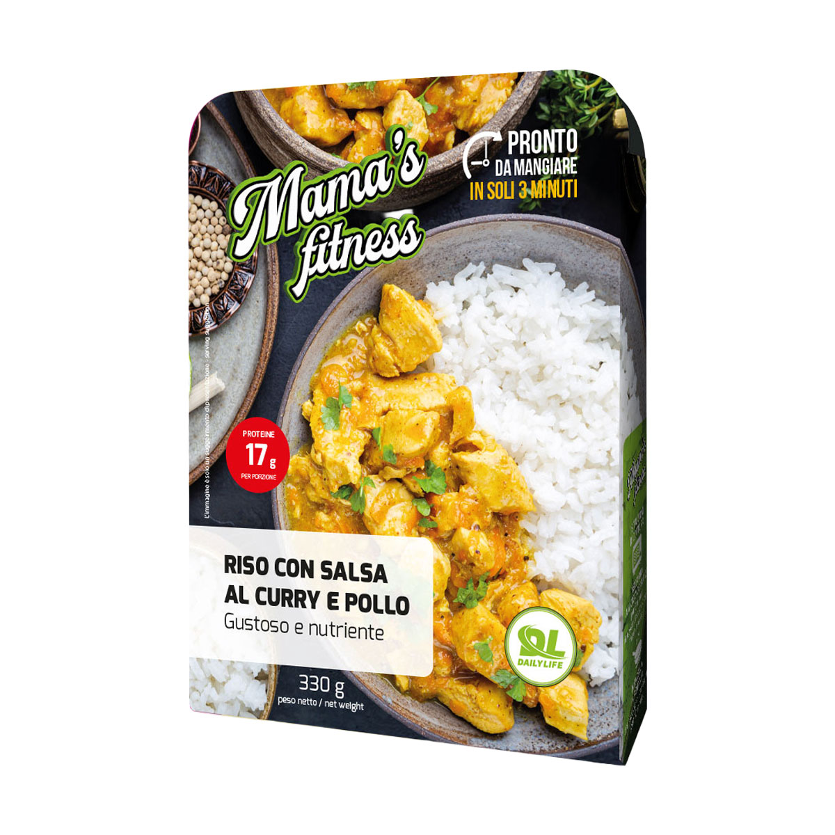 La combinazione di riso, pollo e salsa al curry crea un piatto che soddisfa sia il palato che le esigenze nutrizionali, rendendo Mama’s Fitness una soluzione perfetta per chi desidera un pasto pronto in pochi minuti senza compromettere la qualità. La cura nella selezione degli ingredienti e l’attenzione al bilanciamento dei macronutrienti riflettono l’impegno di Daily Life nel promuovere un’alimentazione sana e gustosa, in linea con uno stile di vita moderno e dinamico.