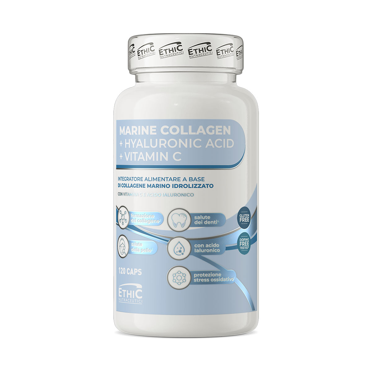 Formulato con Collagene Marino Idrolizzato, Acido Ialuronico e Vitamina C, questo integratore offre un supporto avanzato per la salute di articolazioni, pelle e tessuti connettivi. La sua composizione è studiata per fornire nutrienti essenziali che promuovono il benessere strutturale e funzionale del corpo, favorendo la flessibilità articolare, l’elasticità della pelle e la robustezza dei tessuti connettivi.